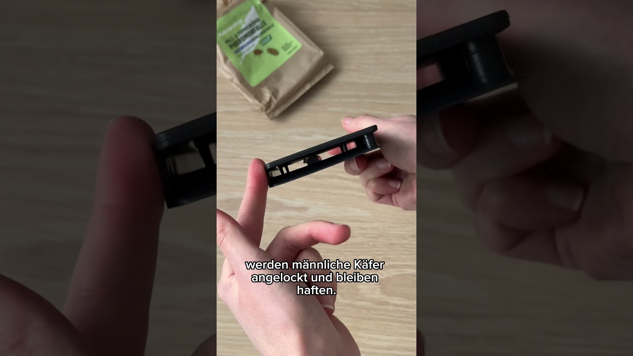Es gibt in der Natur etwas, worüber viele, wenn nicht sogar alle Lebewesen miteinander kommunizieren: Pheromone. Darüber werden unterschiedliche Informationen ausgetauscht, so z.B. Informationen über die Paarungsbereitschaft oder Nahrungsvorkommen. Diesen einfachen Botenstoff machen sich unsere Pheromonfallen zunutze. In ihnen ist ein Lockstoff, durch den entweder ein paarungsbereites Weibchen oder eine reichhaltige und unwiderstehliche Nahrungsquelle vorgegaukelt wird. Das funktioniert in einem Bereich von ca. 4-5 m². Dies ist aber nur eine Eigenschaft der Pheromonfalle. Die andere ist die intelligente Konstruktion des Gehäuses. Die Schlitze sind der perfekte Eingang. Zusammen mit dem dichten Gehäuse der Pheromonfalle ist es dort dunkel und für Käfer sehr attraktiv als Unterschlupf. Hinter den Schlitzen befindet sich eine Rampe, wodurch die Insekten leichter zum Lockstoff kommen. Die Auffanggrube ist mit einem in Weizenöl getränkten Filterpapier belegt, wodurch nicht nur weitere Käfer angelockt werden, sondern die Insekten dank des Öls auch nicht mehr aus der Falle entkommen können.